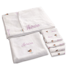 Kit Cueiro + Toalha de banho e 4 Toalhinhas de boca - TudoComNome